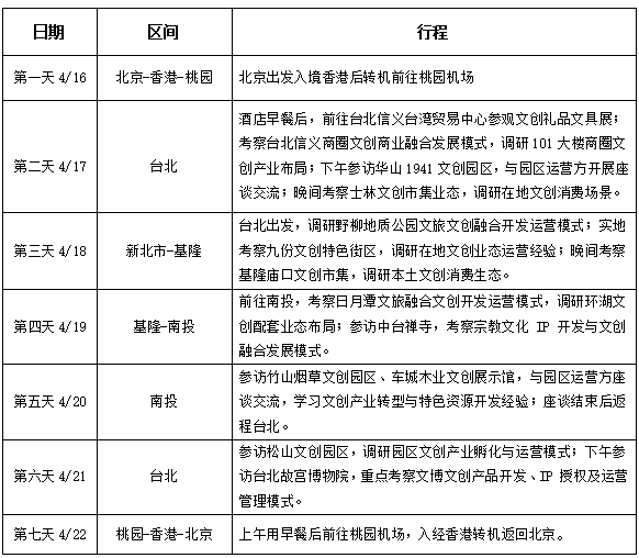 为深化两岸文化产业交流交融,推动两岸文创领域资源对接、合作共赢,北京市海淀区文化创意产业协会携手台湾贸易中心,特组织企业赴台开展考察交流。考察活动将搭建两岸业界深度对话平台,组织参访台湾知名文创园区、标杆企业、专业展会,开展精准商务对接洽谈,邀请两岸业界同仁共探产业发展趋势,挖掘合作机遇,助力企业拓展台湾市场、实现协同发展。