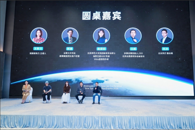 作为大会的下半场环节,圆桌论坛以《AI漫剧的现在与未来:技术、商业与全球化》为主题。在短剧新势力主理人王斯文的深度主持下,跨界嘉宾展开了精彩的脑力震荡: