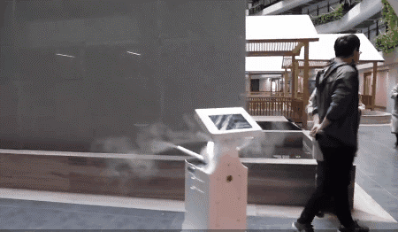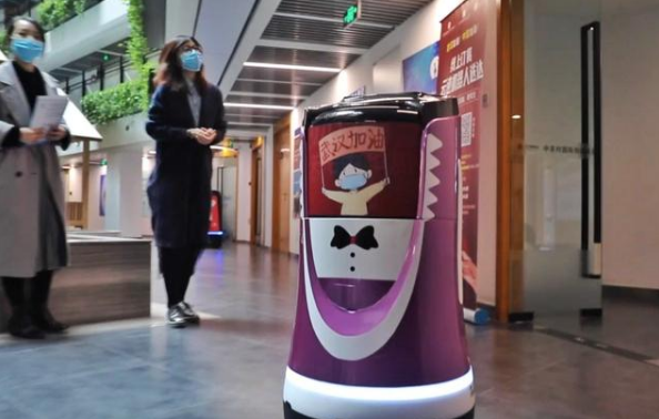 机器人自动测量体温、送餐、消毒,当人员过度聚集时,就会有预警,用手机或者语音就能操控电梯……