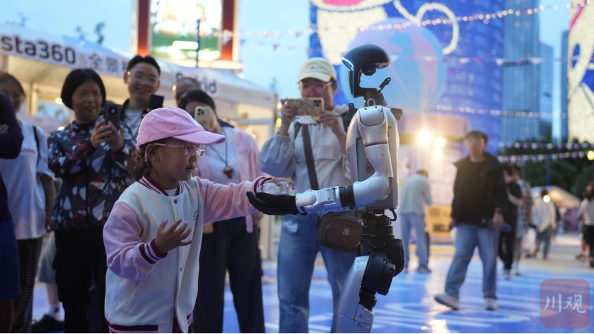 “超级IP集结”成都数字文创潮玩大街上,市民正在进行互动体验。