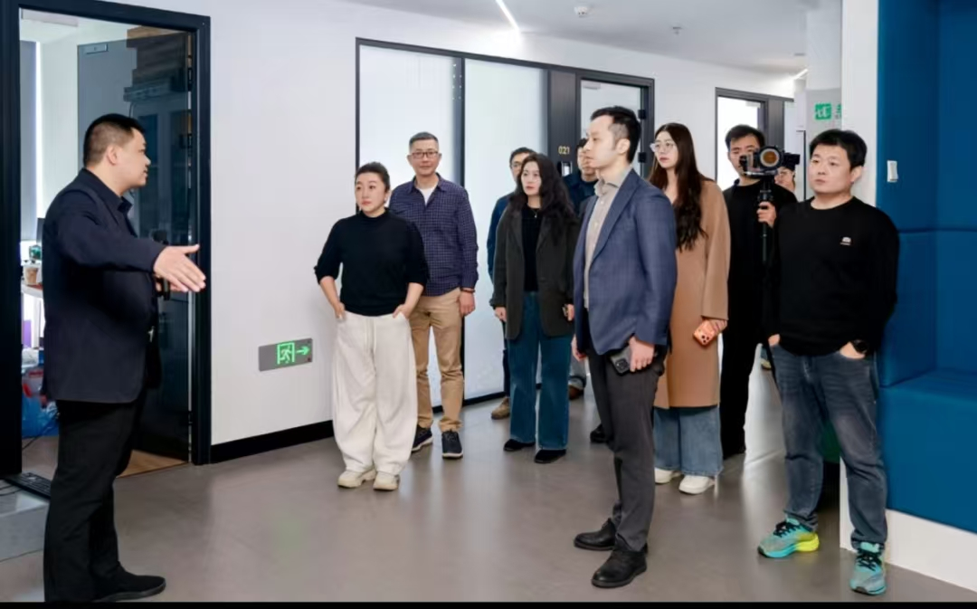 活动伊始,在嗨北短剧OPC社区董事长吕岩的陪同下,与会嘉宾实地参观了社区空间与AI创作成果,全方位了解社区的AI短剧产业布局,对社区的建设规划与发展方向有了直观且深入的认识。